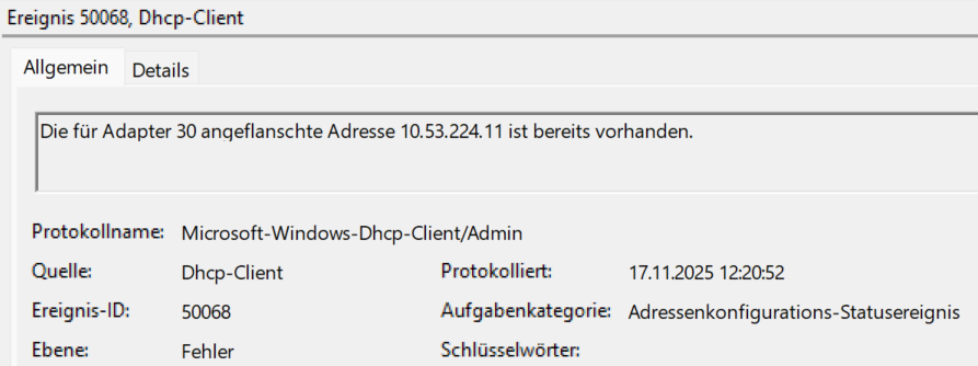 In diesem Beitrag beschreibe ich, weshalb ein Windows-Rechner trotz korrektem DHCP DORA-Dialog die zugewiesene IP-Adresse nicht unbedingt auch verwendet, sondern am Ende doch bei einer APIPA-Adresse landet.